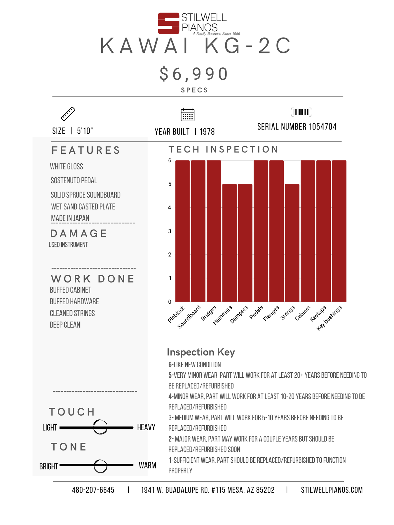 Warranty contract provided with purchase of piano or upon request.