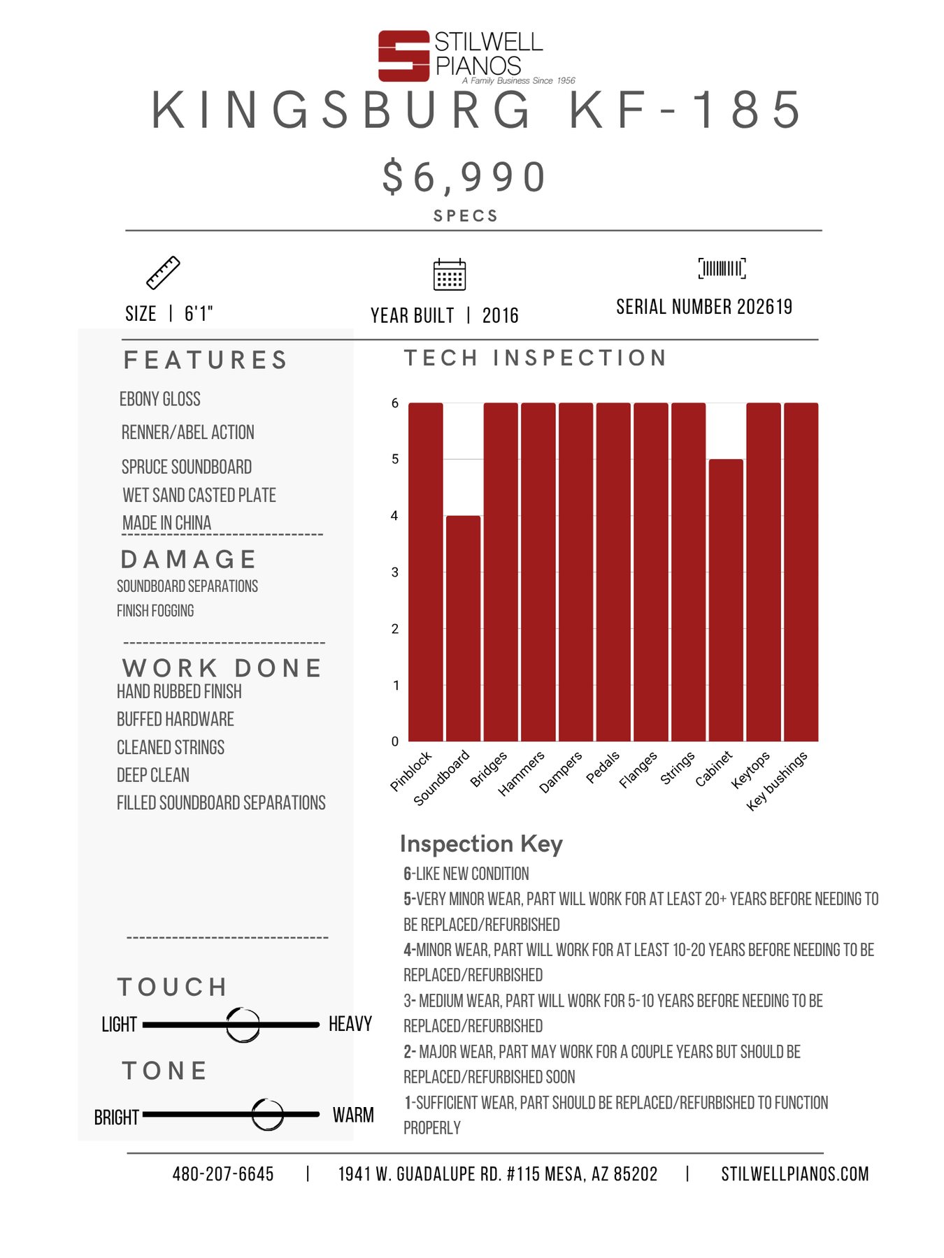 Warranty contract provided with purchase of piano or upon request.