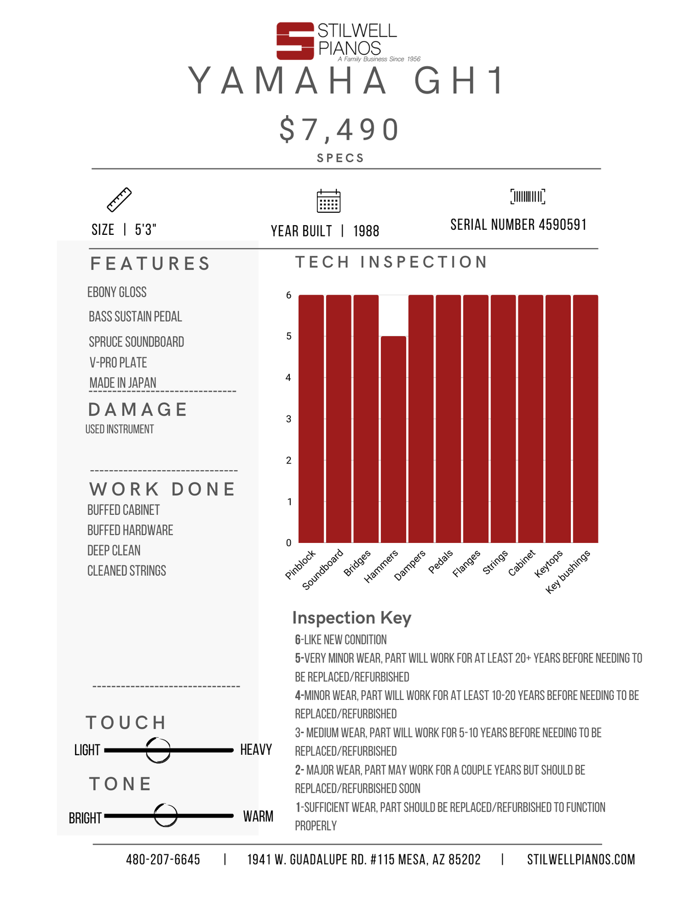 Warranty contract provided with purchase of piano or upon request.