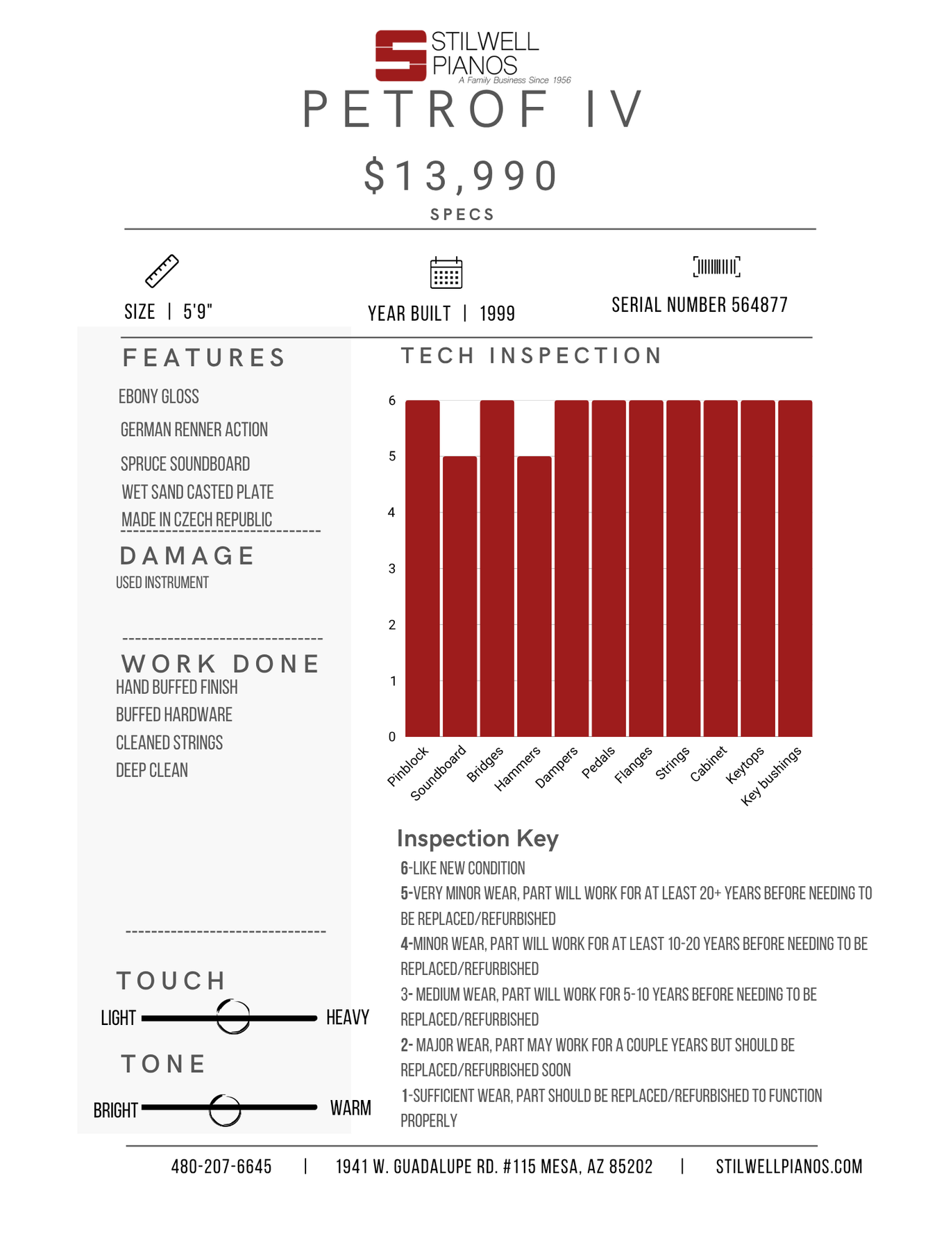 Warranty contract provided with purchase of piano or upon request.
