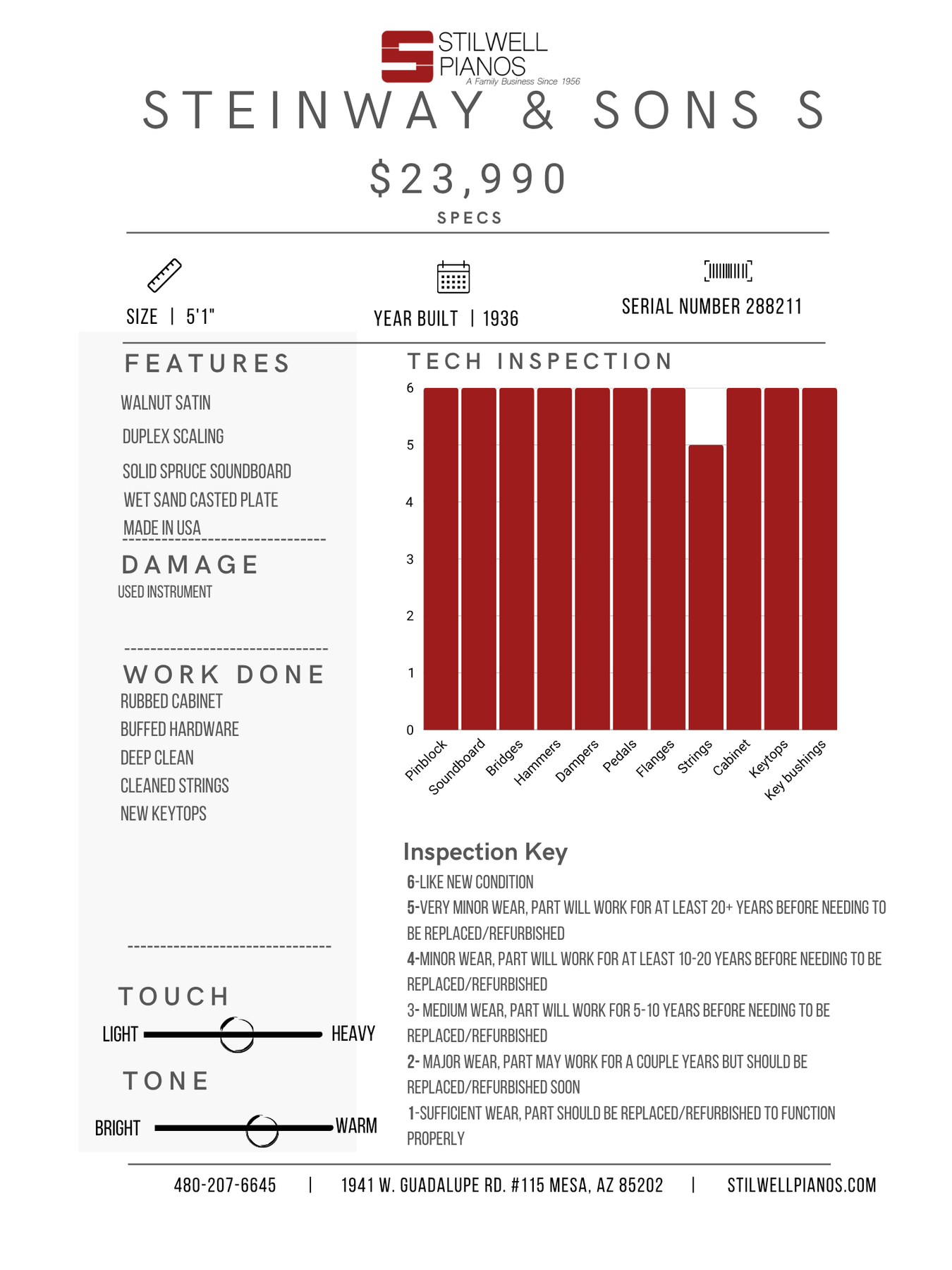 All our pianos come with a 5 year parts and labour warranty that can be serviced by any Registered Piano Technician (RPT). It covers anything that breaks/cracks (soundboard, pinblock, etc). The only stipulations are;