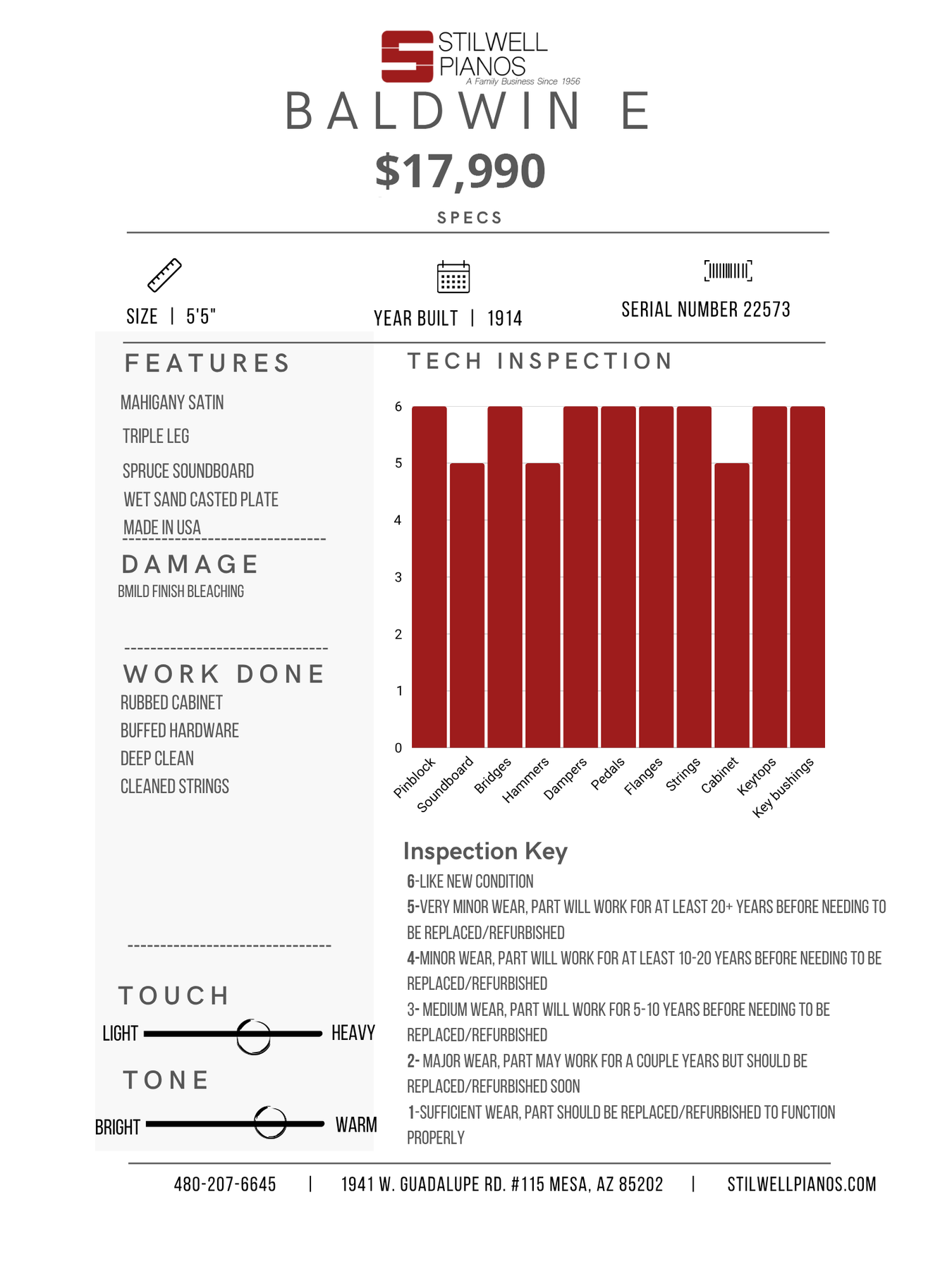 Warranty contract provided with purchase of piano or upon request.