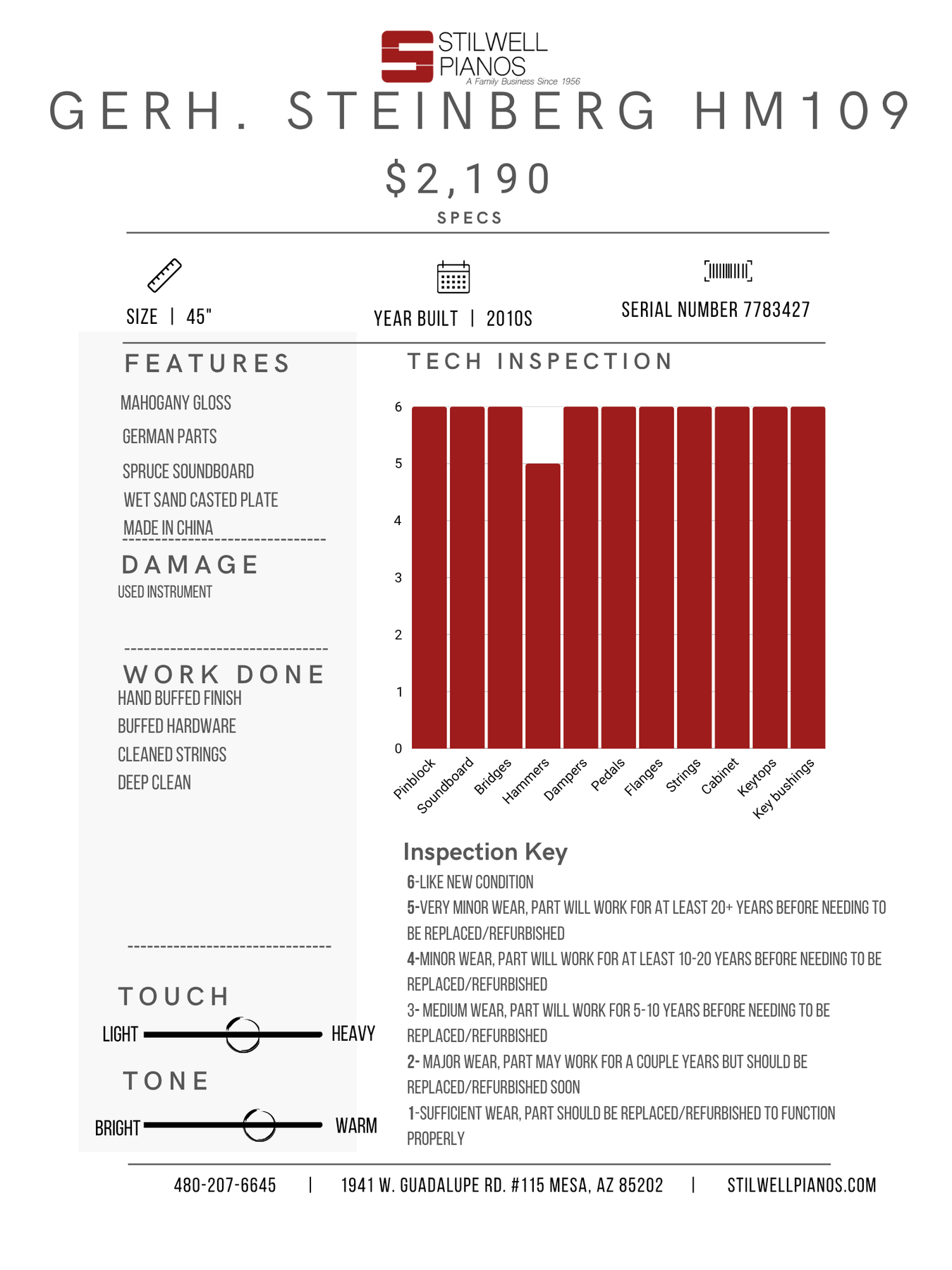 All our pianos come with a 5 year parts and labour warranty that can be serviced by any Registered Piano Technician (RPT). It covers anything that breaks/cracks (soundboard, pinblock, etc). The only stipulations are;