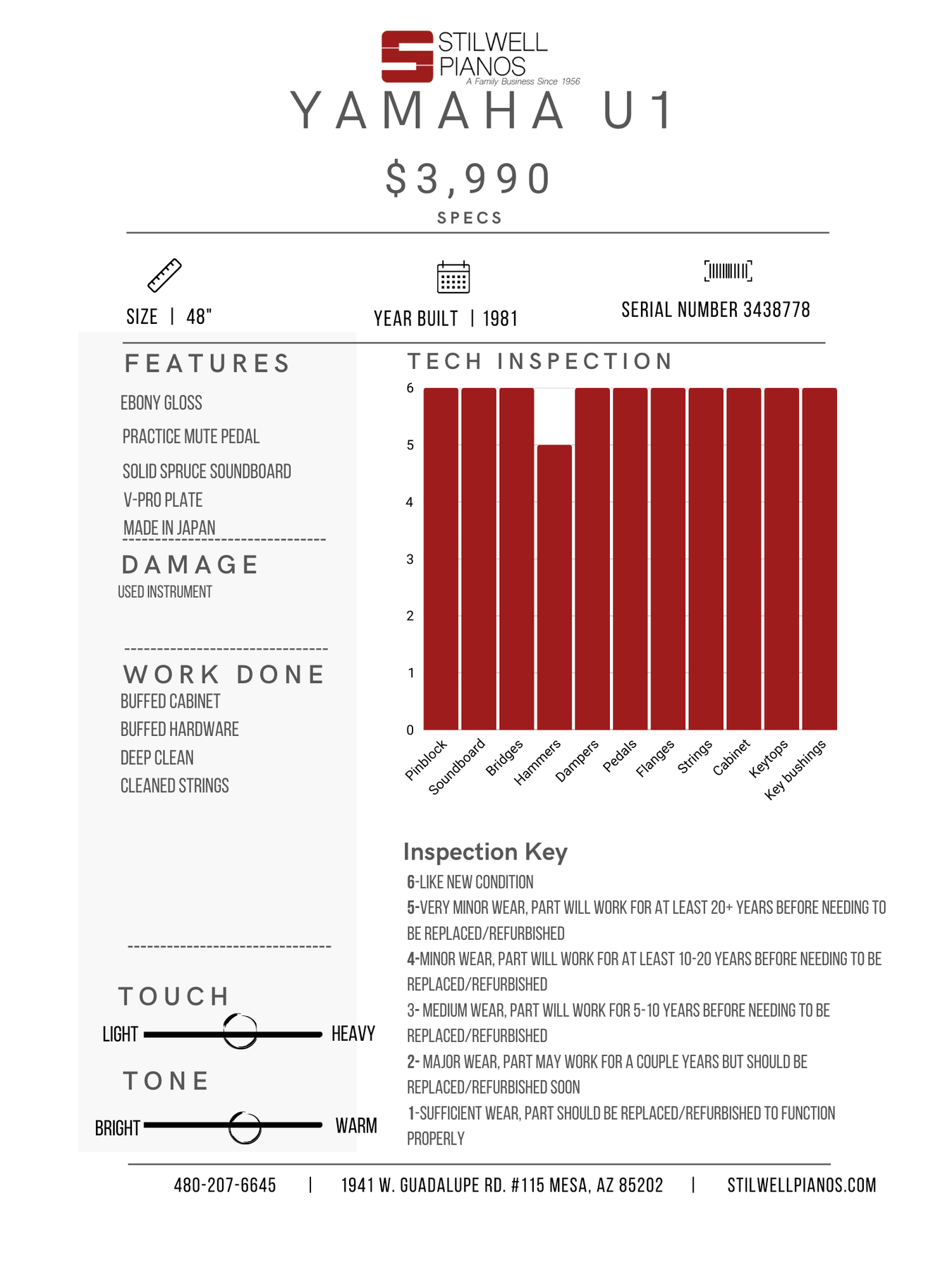 Warranty contract provided with purchase of piano or upon request.
