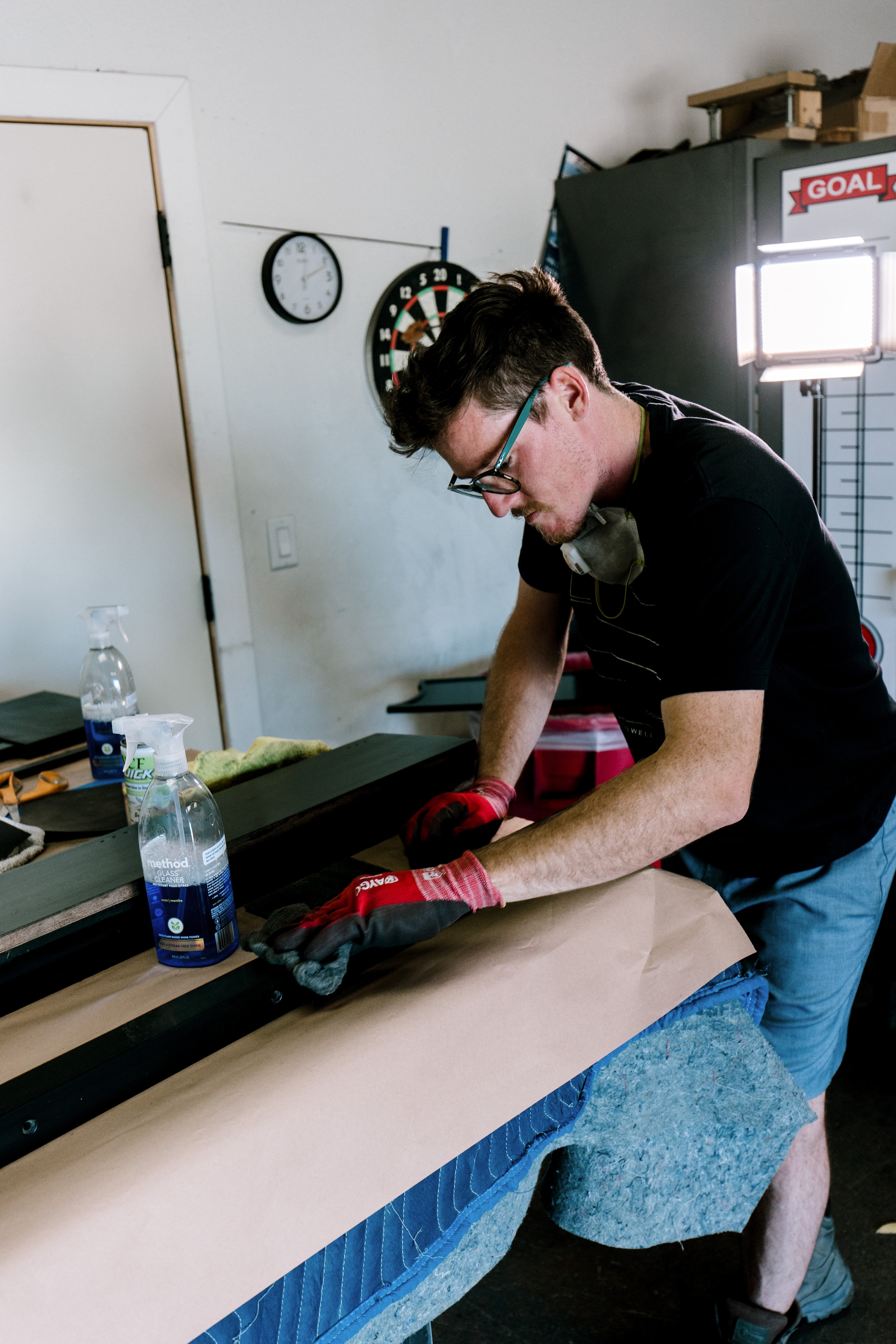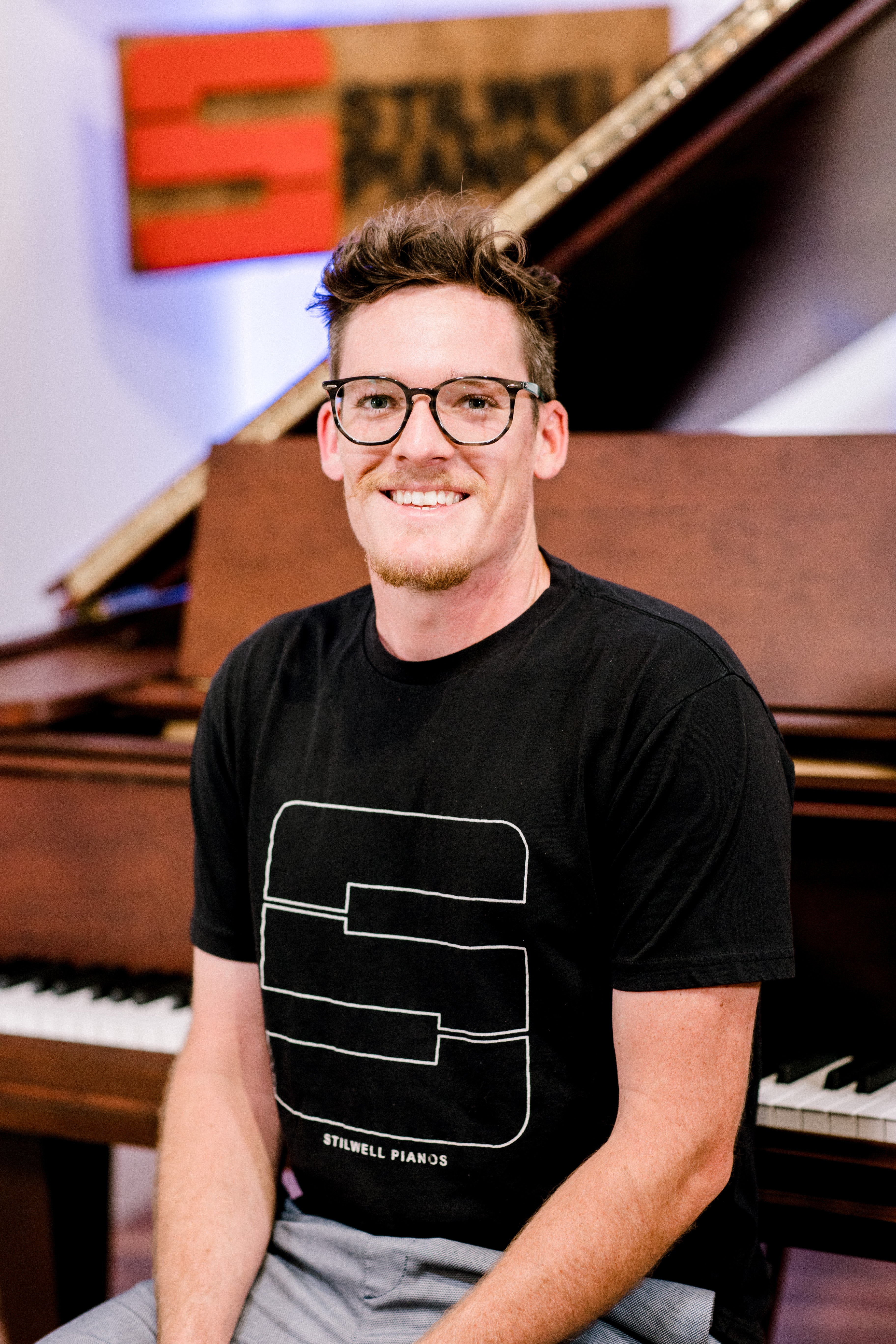Garret works with Tim in the back shop and is a master at satanizing pianos. He is often seen with a huge smile (kid smiles all the time) buffing brass piano parts or hand rubbing a piano. Garret has really long arms and is the best at keeping his lines perfectly straight when satanizing a lid. Garett’s family also owns a window cleaning business so Garett splits his time between working there and working for our family at the piano store.